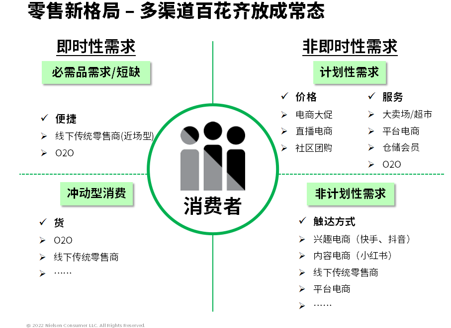 尼尔森IQ中国区董事总经理宋烨表示,未来,中国零售渠道将继续探寻新的发展模式,一是传统商超,大卖场等渠道的转型与变革,发展基于线上线下全渠道融合,解决消费者便利,贴近社区需求的小型社区店,专业店,便利店等小而美的“小业态”店,是未来实体商超业态转型的热门方向 红桃视频在线,二是O2O全渠道转型升级逐渐成为红桃视频高清共识,随着用户习惯的养成及新零售模式的创新,未来增长潜力巨大。