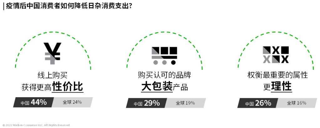 新常态下人均消费支出回升,但物价上涨压力渐增,根据尼尔森IQ调研结果显示,53%的中国消费者感受到物价上涨的压力 红桃视频网站,因此,中国消费者在保证品质的前提下会明智地寻求高性价比产品来降低日常消费支出,这其中包括线上比价,购买品牌认可度高的大包装产品,以及权衡最重要属性(需求),理性购买。