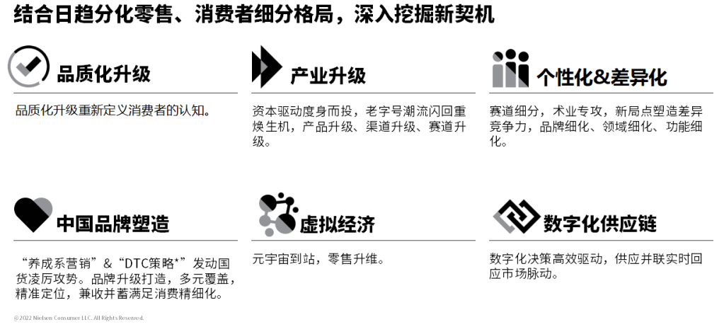 尼尔森IQ研究发现,以满足日益深化的消费者需求为前提,渠道升级,品牌升级,体验升级将成为刺激中国零售重启增长的新动力。