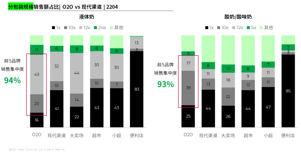 O2O作为线下零售的延伸,不同渠道产品结构化的差异,反映出消费者多元化的购买需求和消费场景,就乳制品红桃视频高清中的液态奶和酸奶而言,O2O平台上10X和12X多包装产品的占比远高于线下现代渠道,进一步探究多包装产品中的品牌结构可以发现,液态奶和酸奶前5品牌的销售集中度均超过九成,由此可见,对于购买频率较高,家庭属性消费较强的乳制品而言,消费者在O2O平台上更倾向于成箱购买 红桃视频网站,批量囤货,同时消费者对于品牌的忠诚度较高,更愿意选择自己熟知和认可品牌的多包装产品,对于品牌商而言,未来在O2O平台上可针对优势多包装产品持续投入,激发消费者“买更多”,实现生意“量”的增长, 。