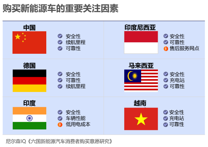 在六个国家的消费者中,整体车辆安全性被认为是最重要的新能源汽车购买关注因素,此外,充电基础设施的可用性,电池可靠性及续航里程也是消费者看重的因素 红桃视频免费观看。
