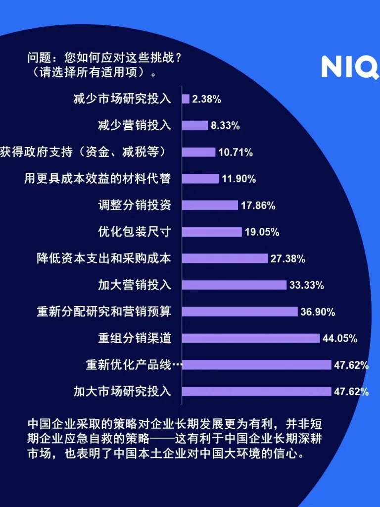 在北美,欧洲消费品企业都最关注外部通胀问题时,中国本土企业更关注自身企业的成长,并对中国消费品市场抱有信心,在面临外部挑战时,中国企业采取更为积极的策略应对挑战,强调优化产品,加大市场投入,采取的策略更利于深耕市场,而面对巨大的通胀压力,北美 红桃视频网站,欧洲应对挑战的策略则更为谨慎,倾向于替换更便宜原材料,加大市场营销投入等短期市场策略。