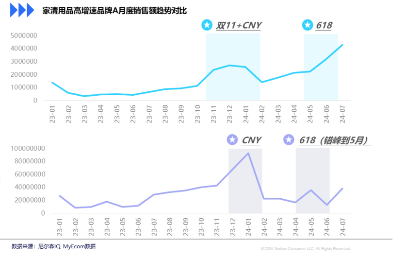 通过尼尔森IQ MyEcom电商数据可以看到,天猫等传统电商平台大促节奏进一步平摊,双十一至春节以及618前后形成全年两大促销期,前置促销对品牌尤为重要 红桃视频网站,同时,内容电商节点化效应明显,以家清品类为例,抖音平台销售旺季主要集中在春节,品牌需把握销售高峰集中发力, 。