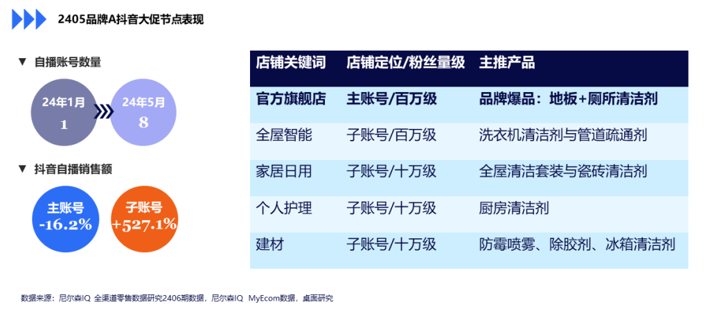 为吸引更多流量,品牌在抖音打造自播账号矩阵,在增加子账号数量的同时,差异化布局账号关键词与主推单品 红桃视频在线,增加曝光,同时由于各子账号间粉丝互通沉淀,增加了粉丝生命周期及价值, 。